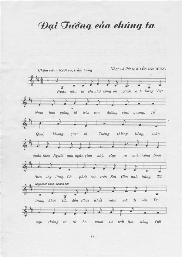 Sau đây chúng tôi xin giới thiệu bài hát này với độc giả để biểu đạt tấm lòng yêu kính của một người dân với đại tướng Tổng tư lệnh: Chuyên đề: Vĩnh biệt Đại tướng Võ Nguyên Giáp Sơn Tùng.
